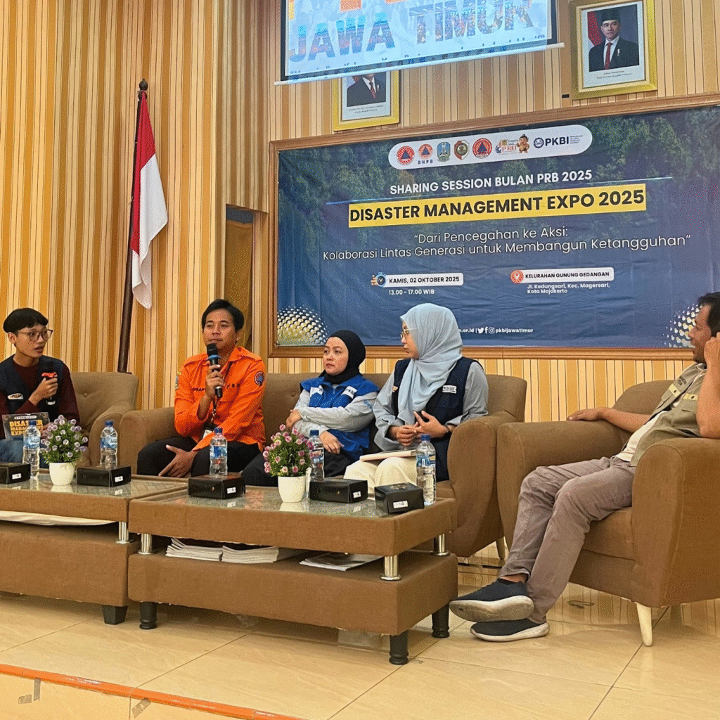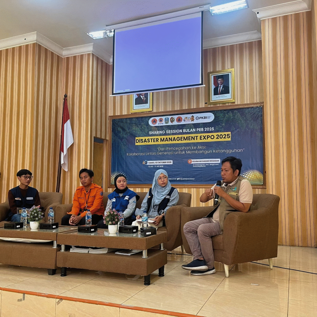 Mojokerto, 2 Oktober 2025 – Perkumpulan Keluarga Berencana Indonesia (PKBI) Jawa Timur menggelar Sharing Session dalam rangka Bulan Pengurangan Risiko Bencana (PRB) 2025. Kegiatan yang berlangsung di Aula Pertemuan Kecamatan Gunung Gedangan, Mojokerto ini menghadirkan narasumber dari berbagai lembaga, termasuk Jejaring Mitra Kebencanaan (JMK), BPBD, PKBI DKI Jakarta dan PKBI Jatim sendiri.