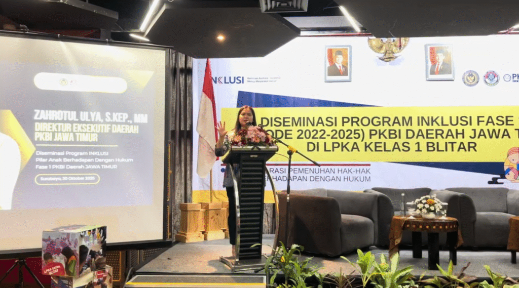 Surabaya, 30 Oktober 2025 — Perkumpulan Keluarga Berencana Indonesia (PKBI) Jawa Timur menyelenggarakan Diseminasi Program INKLUSI Fase 1 (2022–2025) di Hotel Mercure Surabaya. Kegiatan ini mempertemukan Kepala Kanwil Ditjenpas Jawa Timur, LPKA Kelas I Blitar, BAPAS, pemerintah daerah, akademisi, organisasi masyarakat sipil, dan media untuk memperkuat kolaborasi dalam pemenuhan hak Anak Berhadapan dengan Hukum (ABH) di Jawa Timur.