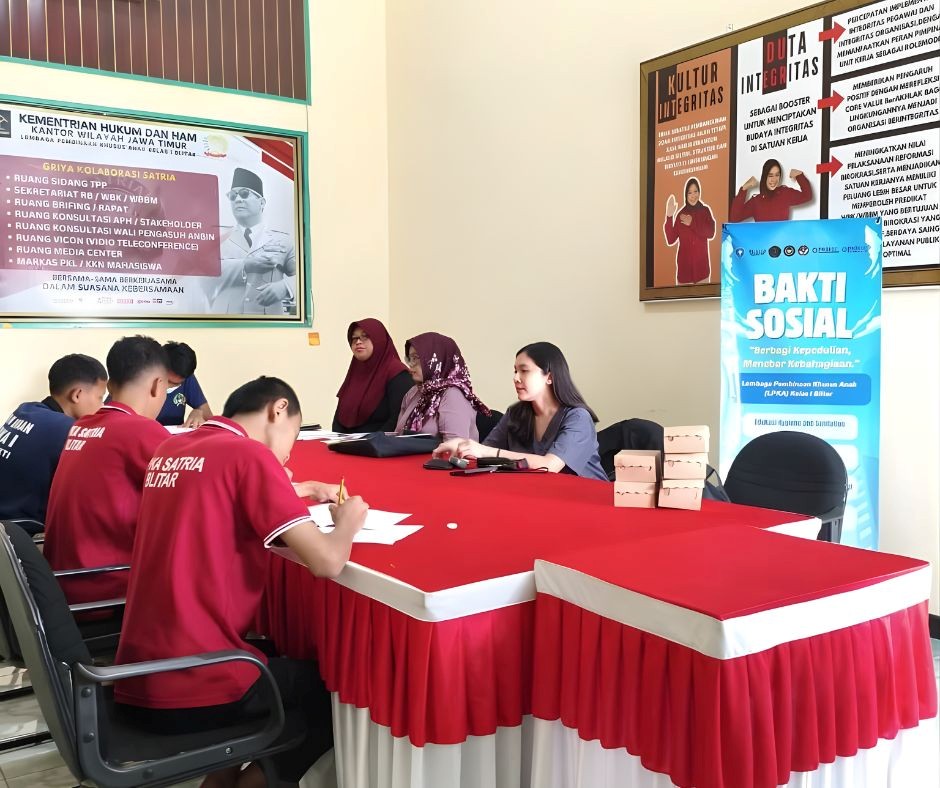 Blitar, 22 Januari 2026 — PKBI Jawa Timur melalui Program INKLUSI melaksanakan kegiatan Penguatan Kesehatan Anak Berhadapan dengan Hukum (ABH) di LPKA Kelas I Blitar. Kegiatan bertajuk Bakti Sosial ”Berbagi Kepedulian, Menebar Kebahagiaan” ini merupakan bentuk pengabdian masyarakat yang dilaksanakan secara kolaboratif bersama PKBI Cabang Malang, Fakultas Kedokteran Universitas Brawijaya, tenaga kesehatan, serta mitra Apotek Puji Santoso, sebagai upaya pemenuhan hak kesehatan fisik dan mental anak binaan.